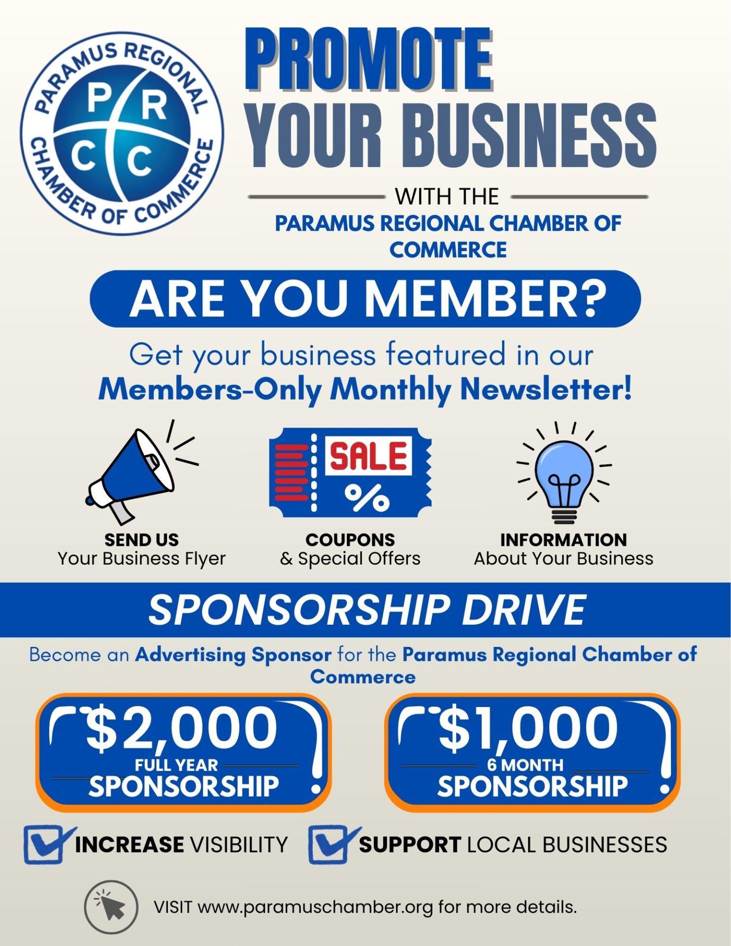 Become an Advertising Sponsor for the Paramus Regional Chamber of Commerce Register here and send check to P.O. Box 325, Paramus, NJ 07652
