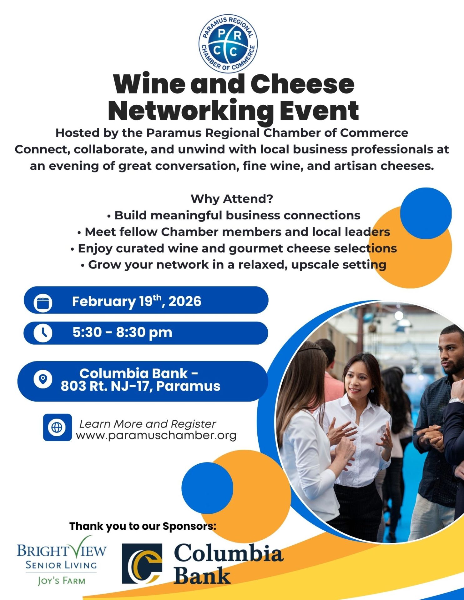 Wine and Cheese Networking Event hosted by the Paramus Regional Chamber of Commerce.